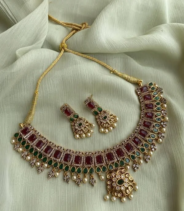 The set includes matching earrings that complete the coordinated look, making it ideal for special occasions. Its fine craftsmanship highlights delicate stonework and intricate design elements. Lightweight and comfortable, it can be worn for long hours without discomfort. Perfect for weddings, festive celebrations, and parties, this choker pairs beautifully with sarees, lehengas, and Indo-western outfits.