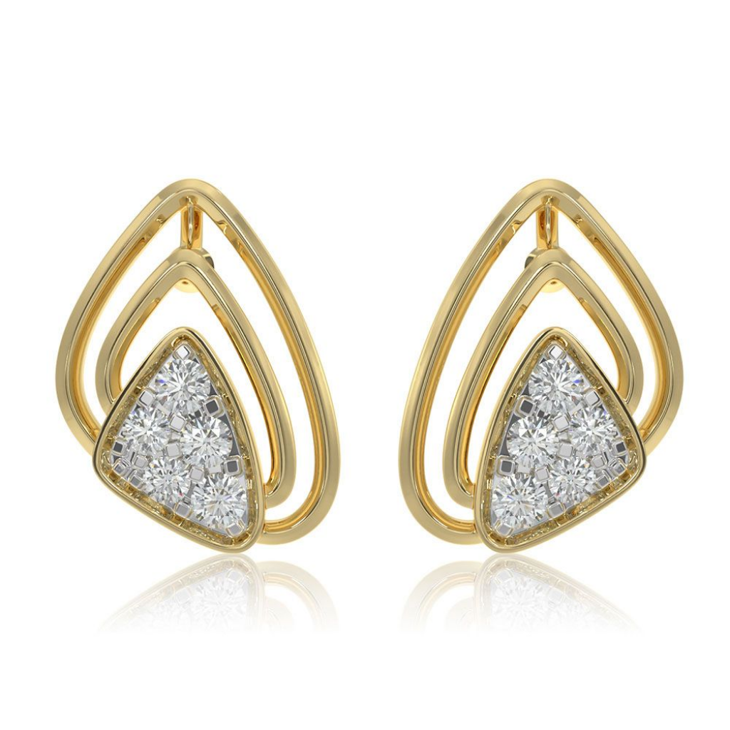 Crafted in 9Kt yellow gold, these diamond studs showcase diamonds in a refined layered geometric design. Elegant, versatile, and perfect for daily wear.