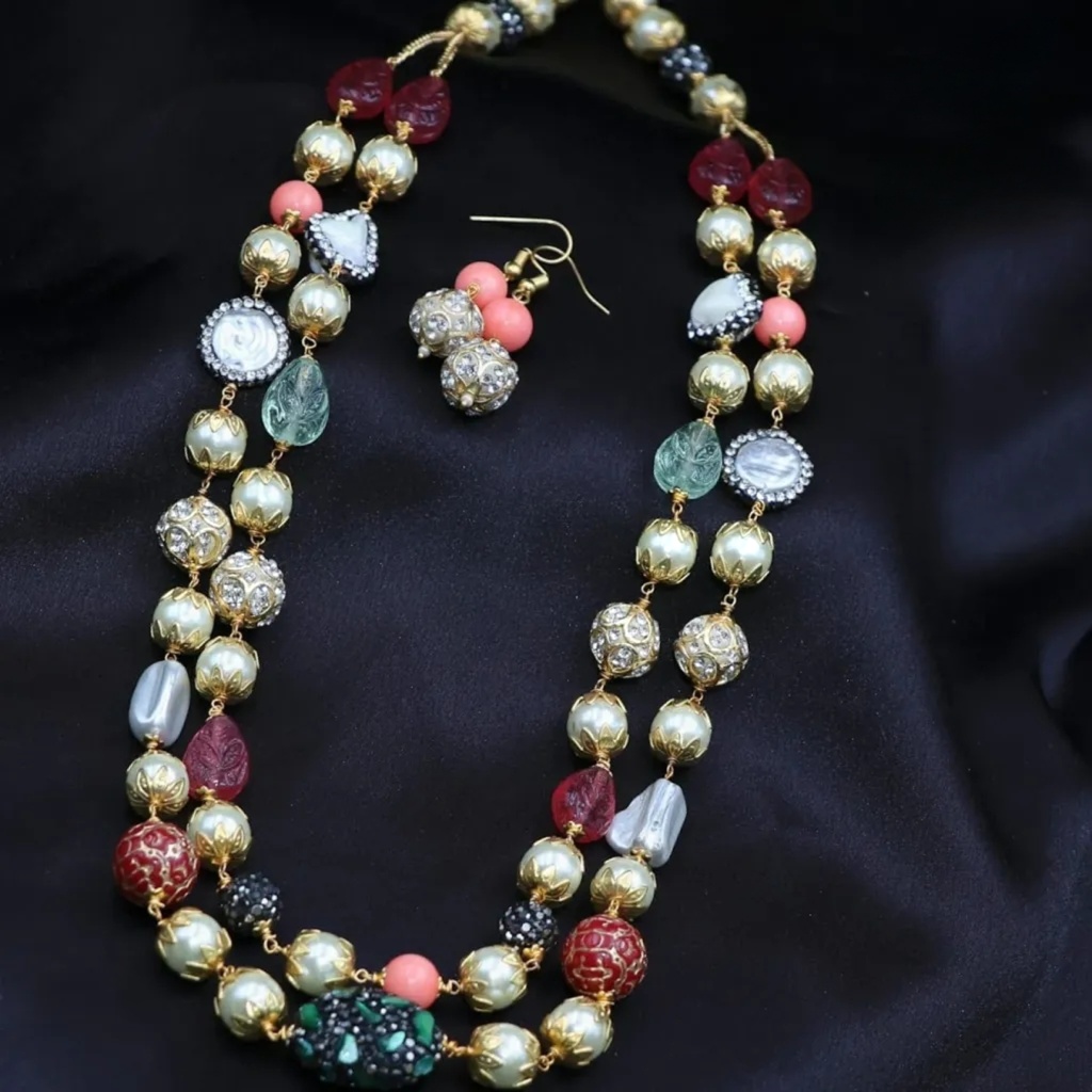 Double layered Pearls with shell stones Mala with Matching Earrings
